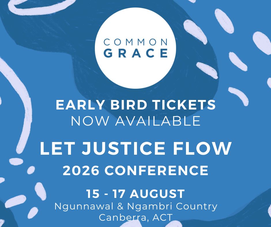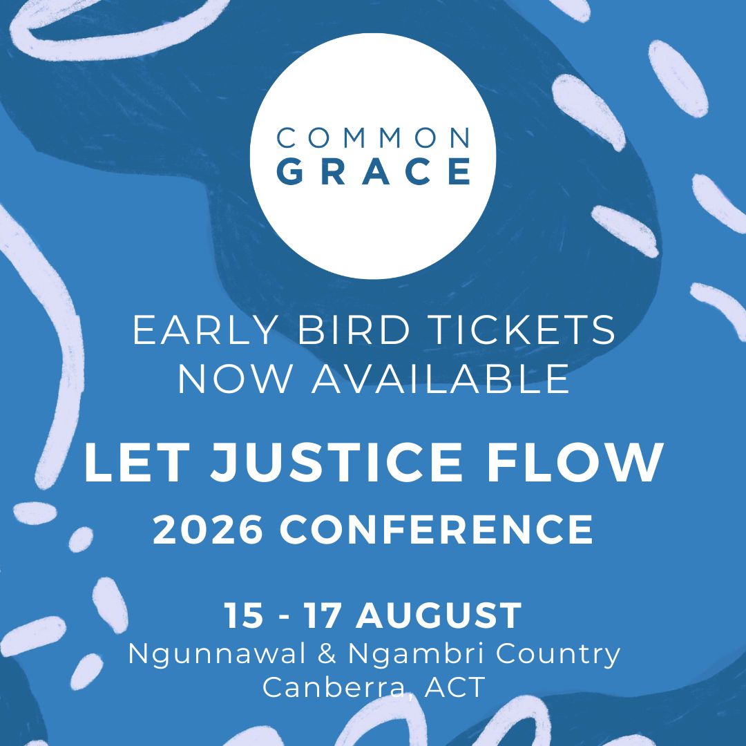 We’re excited to announce Common Grace will again be gathering for our ‘Let Justice Flow’ Conference, 15 - 17 August 2026, on Ngunnawal & Ngambri Country, Canberra.