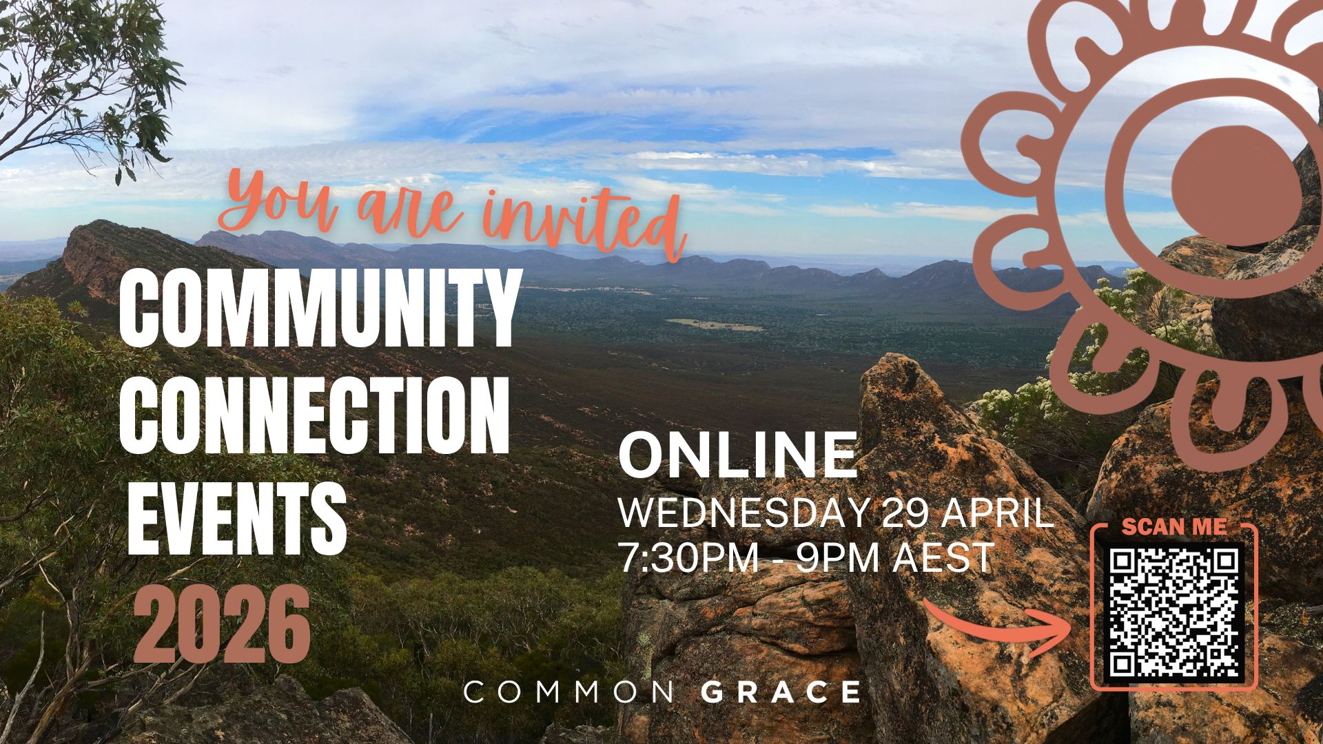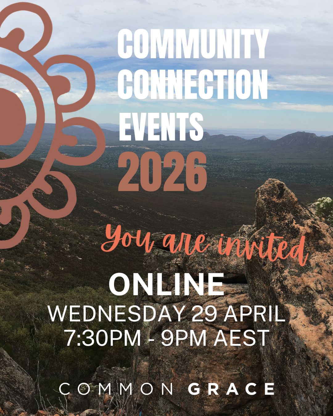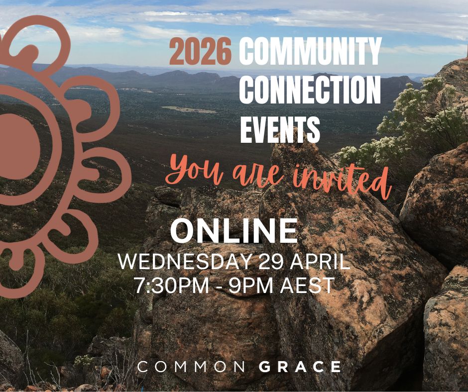 Sign up to join us at our ONLINE Common Grace Community Connection Event, Wednesday 29 April, 7:30 - 9pm AEST.